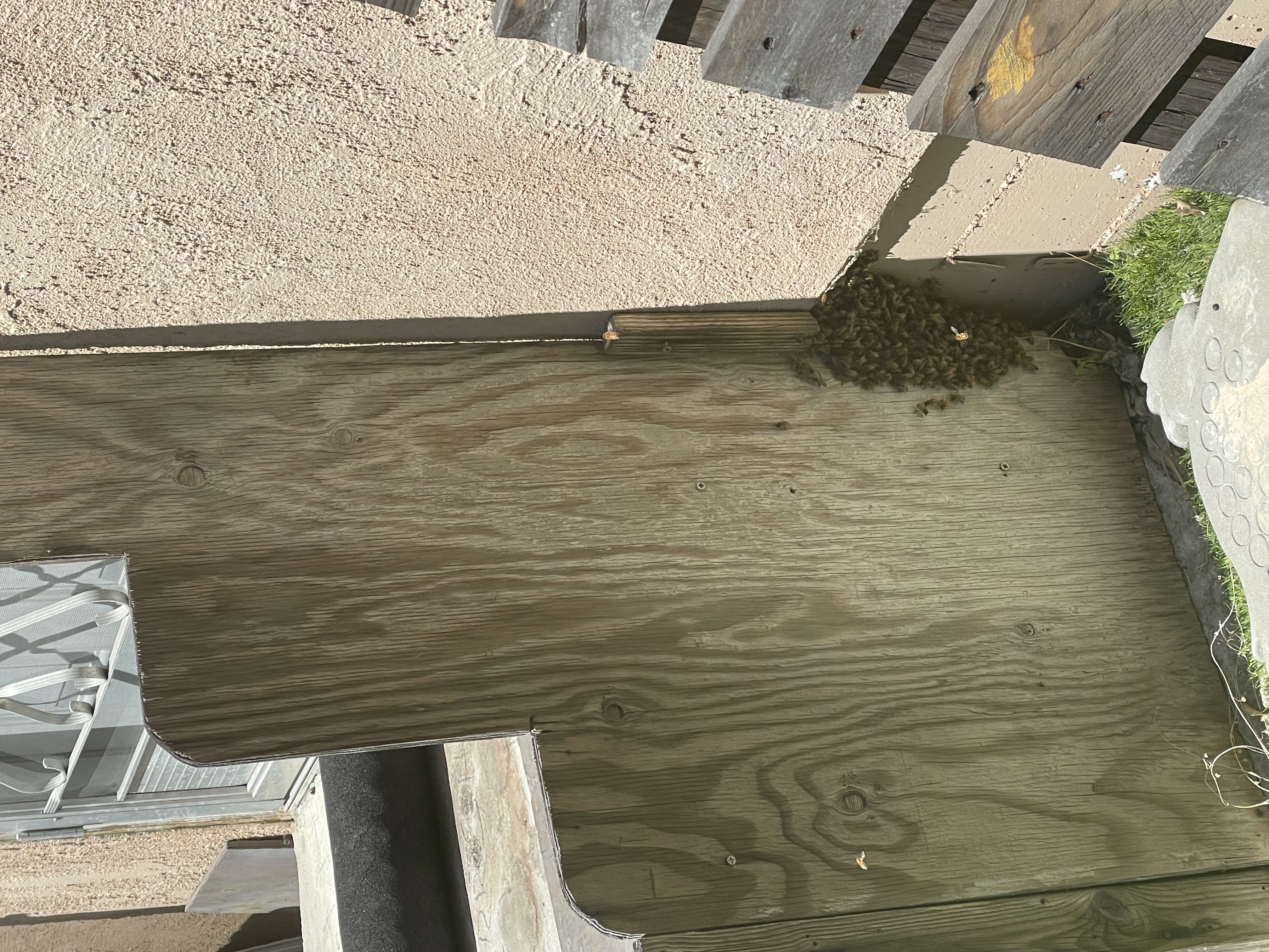 I talked to the home owner and she assured me this is on the outside of the house on a fence, not inside anything. I think this qualifies as a swarm.
