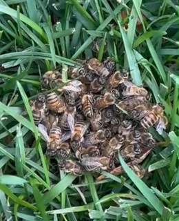 The husband of the household is allergic to bees (epi pen) The pile of bees is under an oak tree, but thee doesn't seem to be a swarm in it. These bees may be stragglers from a swarm, but I can't fathom why they're in the grass. Arlington Avenue near San Antonio Avenue +1 (510) 295-9450