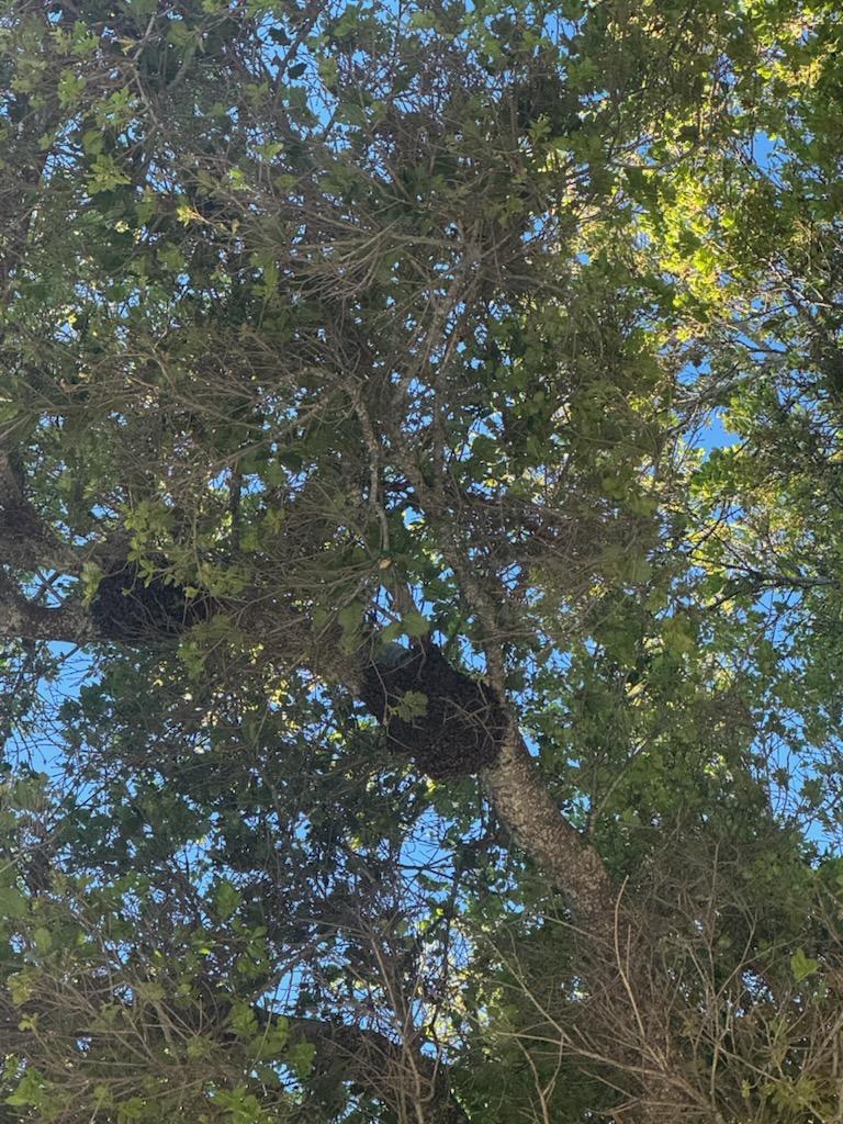 Caller was able to send a pic. At least 20' up she said. Definitely a jet pack situation. Sigh. I'm sure there are bait hives all around in Berkeley.