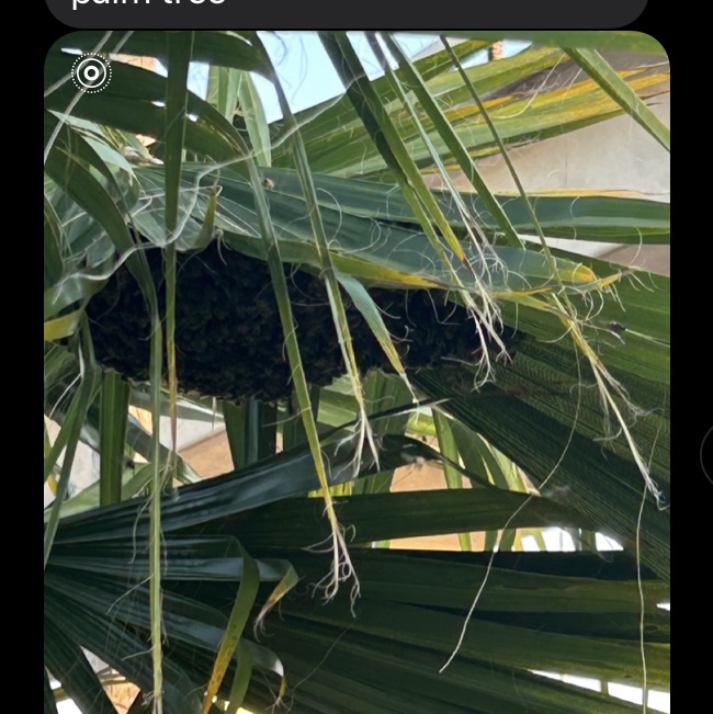 Re: Swarm in Hayward western blvd. Clinging to palm frond Fabian Diaz, March 18 2026