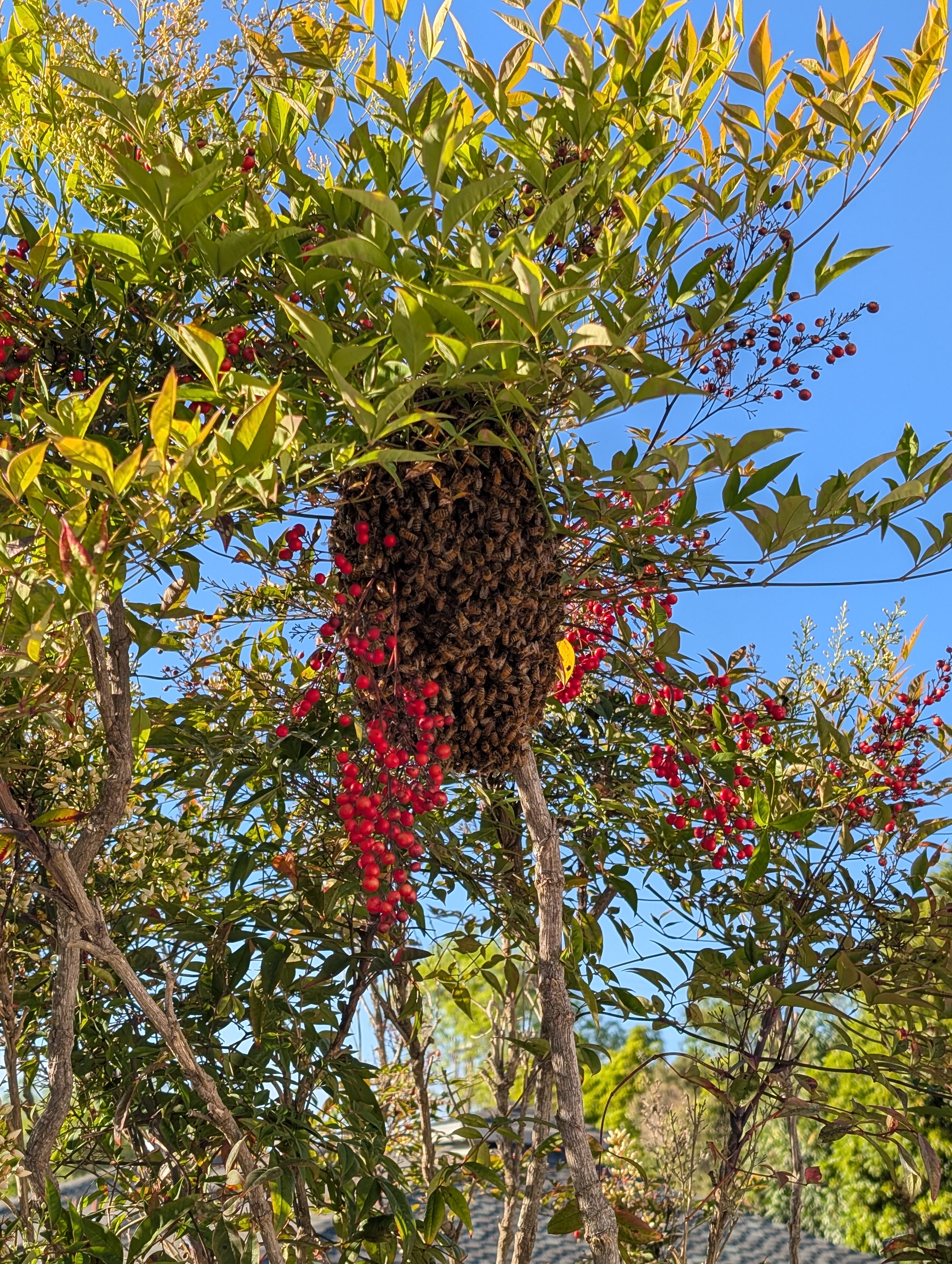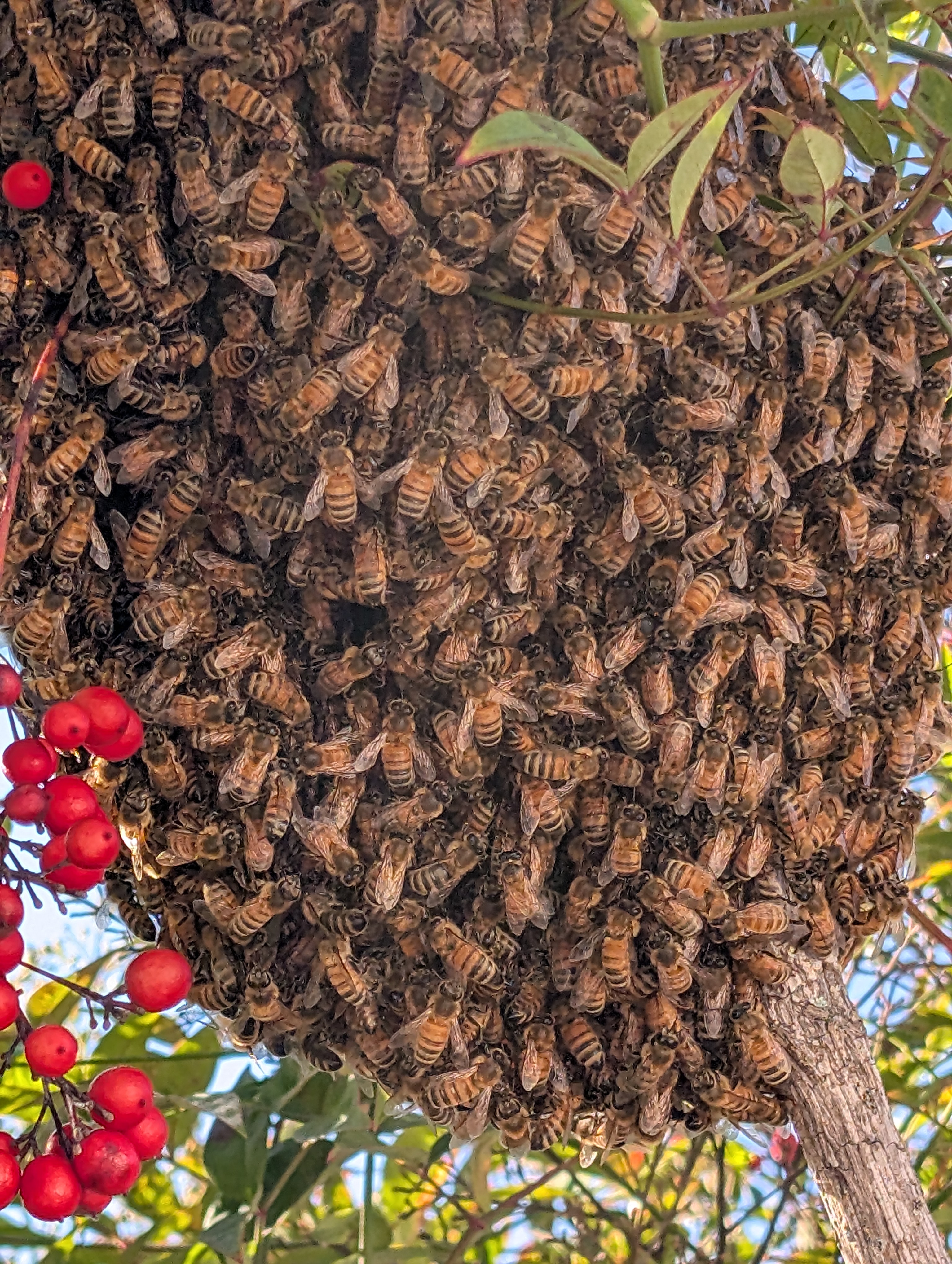 Swarm in San Leandro - 7 ft up on flexible tree branch. Its late so lmk if you could go now or if you want to wait until tomorrow early morning.